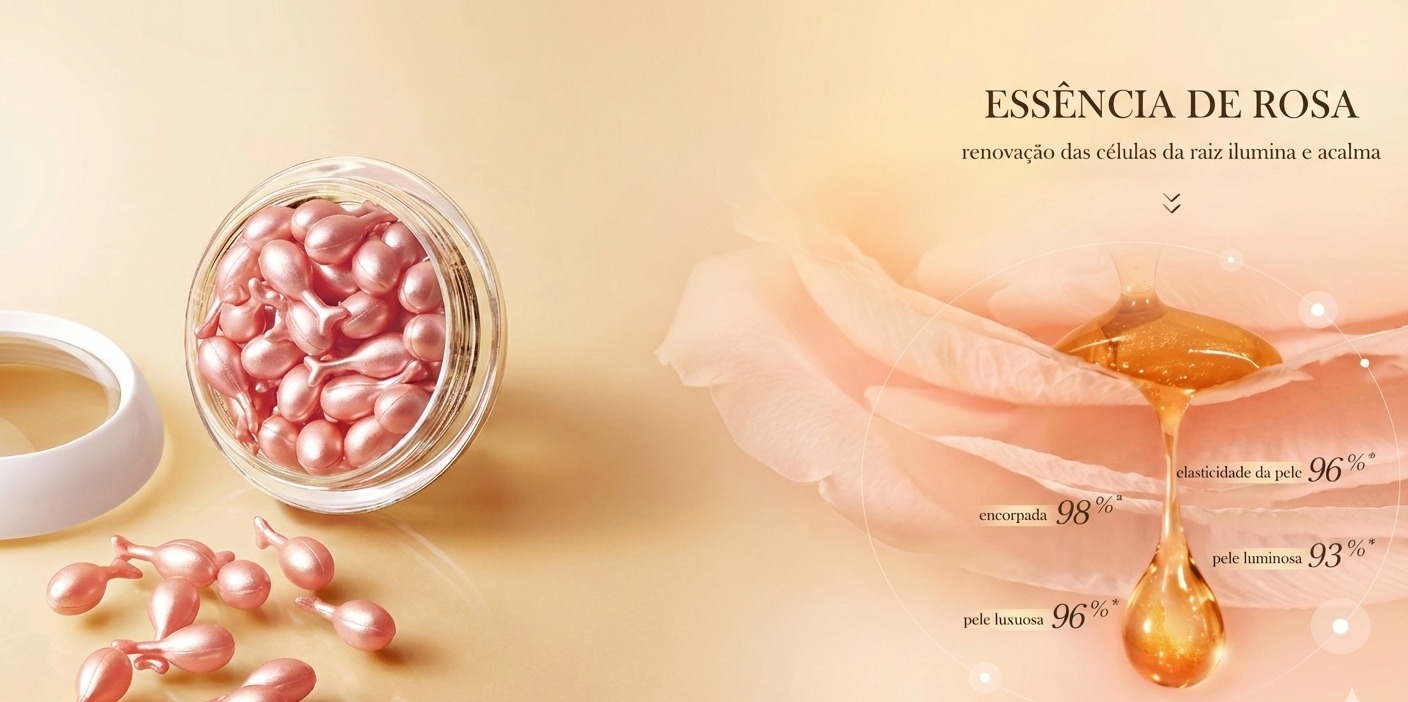 As cápsulas com essência de caracol e rosa ajudam no rejuvenescimento, estimulando a aparência de pele firme, uniforme e revitalizada.